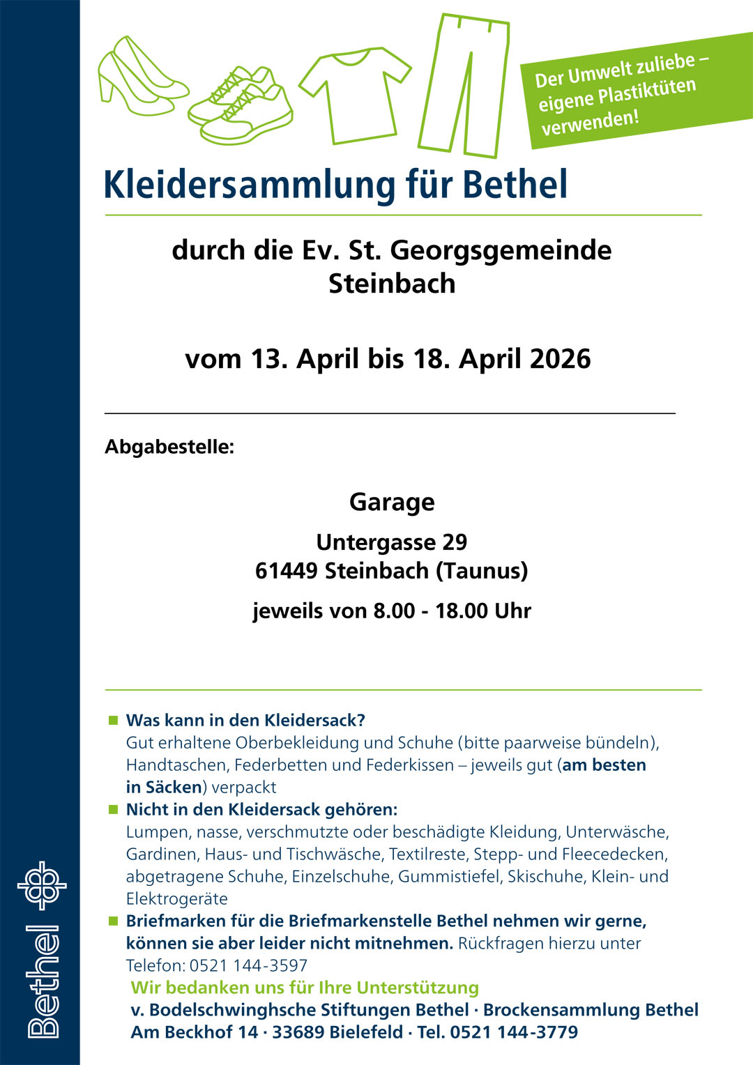 Spendenkonto: Raiffeisenbank Oberursel e.G. IBAN: DE89500617410100115878 BIC: GENODE51OBU